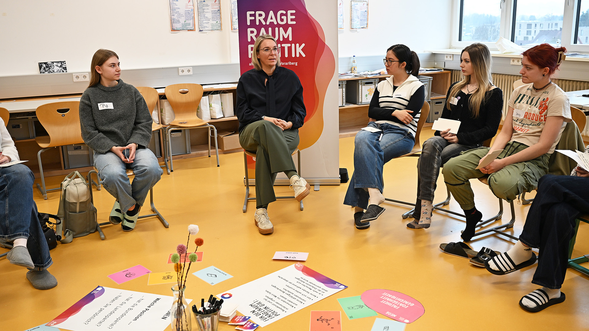 Die 119 Jugendlichen der 7. und 8. Klassen des B.O.R.G. Lauterach stellten den Politiker*innen der fünf im Landtag vertretenen Parteien einen Vormittag lang ihre Fragen. Die Schüler*innen konnten sich über die Standpunkte der verschiedenen Landtagsparteien informieren und sich so ihre eigene Meinung bilden. Es kam zu angeregten Diskussionen über jugendrelevante Themen mit den Politiker*innen.